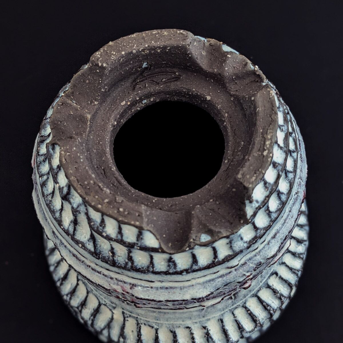 艶のある白の中に青いニュアンスのある藁灰白釉