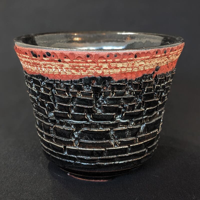色の違う赤土を練り込んで地層のような模様を練上げた素地に