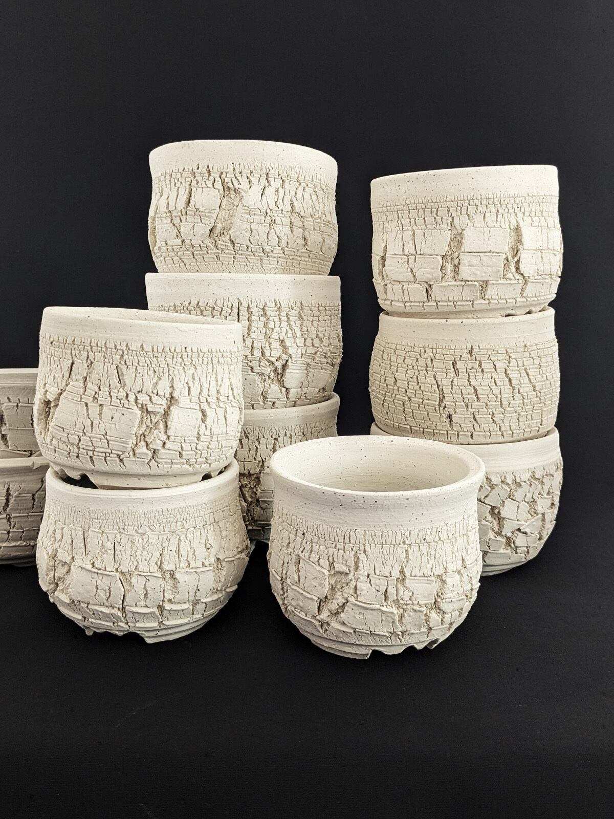 バキバキの象裂でご好評をいただいておりますICHIHOPOT壱の白土を用いた焼き締めバージョンです。なにか尊い、神聖な雰囲気が漂う鉢です。